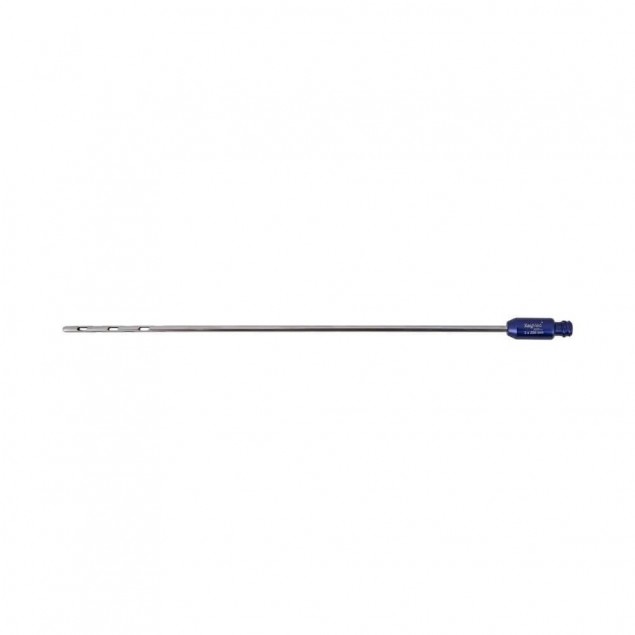 This is a 12-port Luer Lock cannula for the extraction of adipose tissue, reusable and made of stainless steel. It is specifically designed for use in syringe-based liposuction and lipotransfer procedures in aesthetic medicine and plastic surgery.